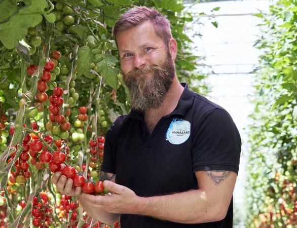 Nedre Hanasand Planteskoler holder til i Rennesøy, 30 km nord for Stavanger, og dyrker tomater hele året. Virksomheten har vært drevet av familien Hanasand i mange generasjoner og nåværende eier, Stig Jakob Hanasand, er tredje generasjons tomatdyrker. Han sier: «Hanasand dekker fire hektar, med tomater spredt over seks forskjellige drivhus. Drivhuset hvor Signifys LED-belysning er installert, er der vi dyrker flest forskjellige typer tomater. De er røde, brune, svarte, gule og stripete, og kommer i forskjellige former og størrelser. Vi har ca 30 forskjellige varianter totalt.